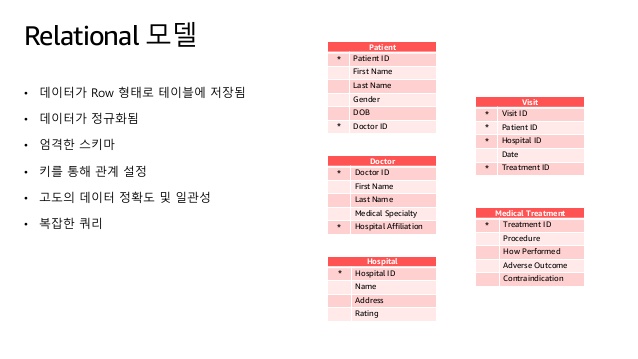 이것은 관계형 데이터베이스가 현재의 개발 환경에서 유용하지 않거나 확장성, 고성능을 제공하지 않는다는 것을 의미하지는 않는다. 그 반대가 사실이다. AWS 역사상 가장 빠르게 성장하고 있는 서비스인 Amazon Aurora(관계형 데이터베이스)가 계속 남아있기 때문에 이 사실은 고객에 의해 입증되었다.
