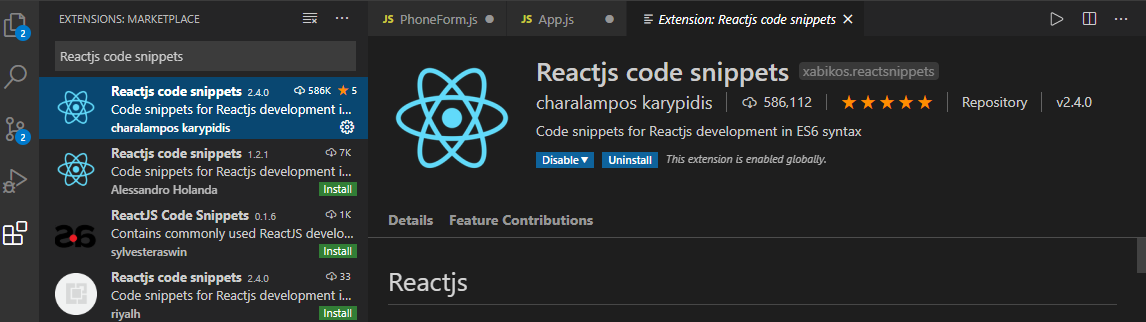 리액트 컴포턴트 및 라이프사이클 함수를 작성할때 단축 단어를 사용하여 간편하개 자동 코드 생성하는 스니펫 모음.